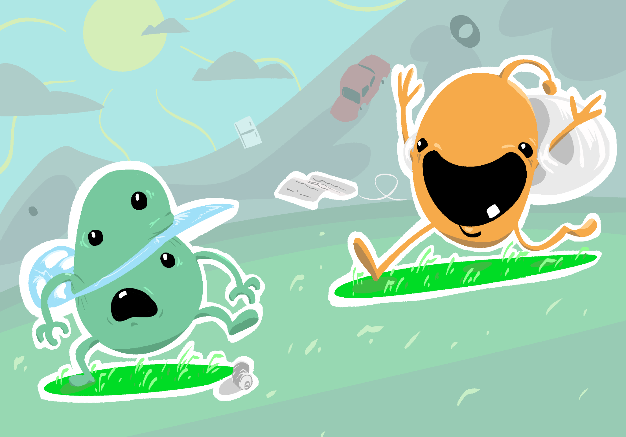 Eco & Polly are two characters I designed in my final year of university as part of an eco-awareness campaign for Roots. Inspired by both Wenlock & Mandeville from the 2012 London Olympics, and the Dumb Ways to Die art, these colourful characters bring a playful face to an otherwise serious issue.