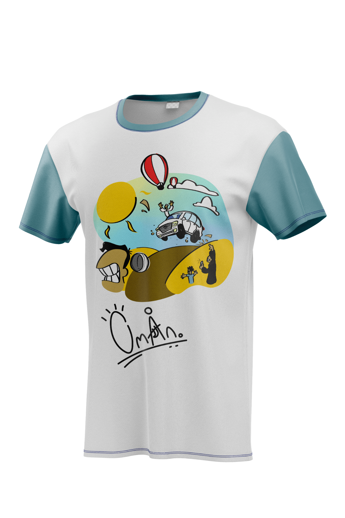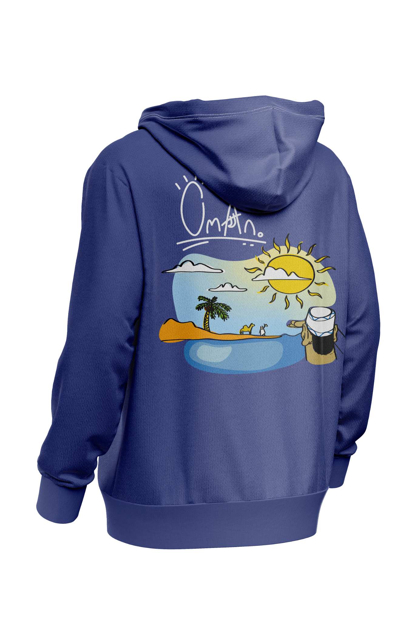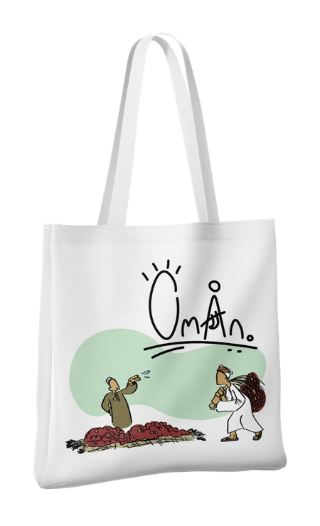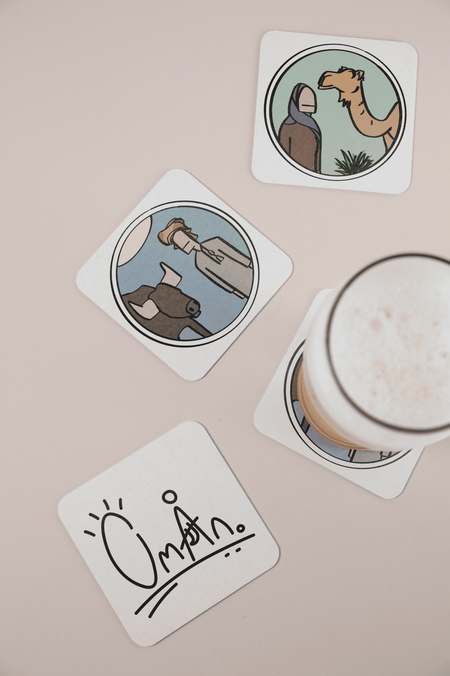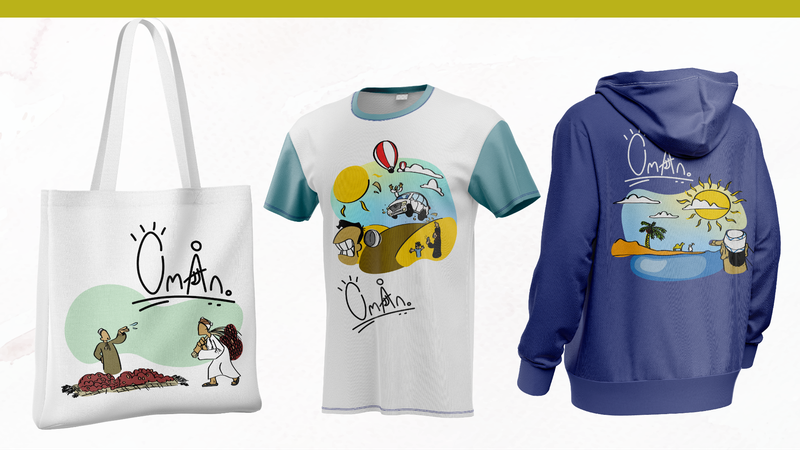 The intention was to capture the essence of scenes you might see when visiting Oman as a tourist or newcomer, from the close food culture to the extravagant outdoor activities. People leaving the country after a visit may have a special fond memory of a specific activity they did, and seeing a piece of merchandise that reminds them of that special moment may incite them to purchase it.